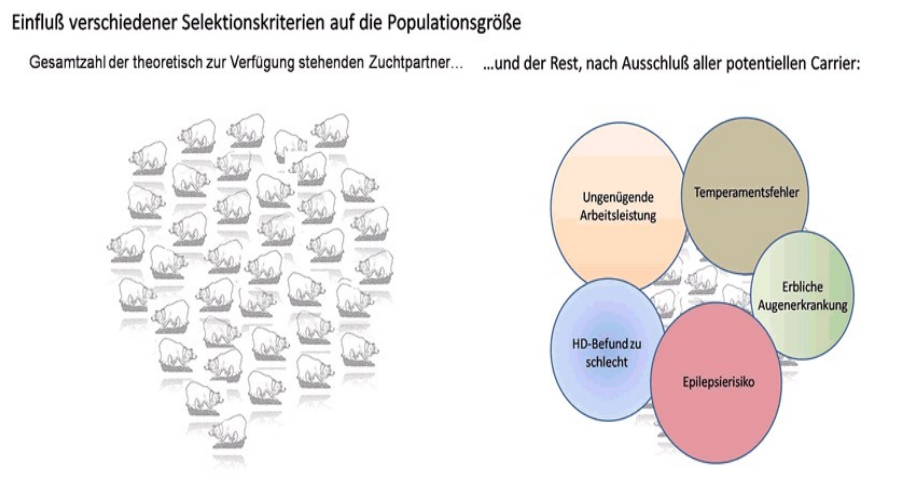 Je mehr Hunde aufgrund unserer verschiedenen Selektionskriterien aus der Zucht ausgeschlossen werden, desto kleiner wird der Genpool.
